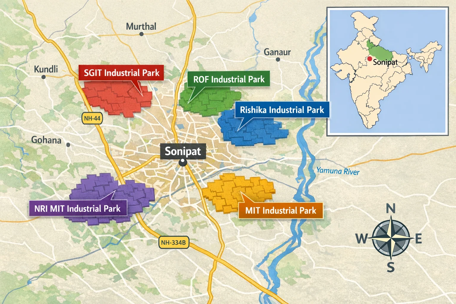 The NH-334 B belt is emerging as a major industrial corridor in Sonipat.